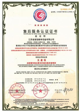 售后服務(wù)認(rèn)證證書(shū)五星