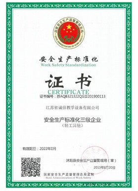 江蘇省誠(chéng)信教學(xué)設(shè)備有限公司成立于2003年,是一家專(zhuān)注教學(xué)設(shè)備研究開(kāi)發(fā)、生產(chǎn)制造、銷(xiāo)售服務(wù)為一體的綜合性教育、服務(wù)型企業(yè),是江蘇省教育設(shè)備行業(yè)協(xié)會(huì)會(huì)員單位、中國(guó)教育裝備行業(yè)協(xié)會(huì)會(huì)員單位,公司先后通過(guò)ISO9001國(guó)際質(zhì)量管理體系認(rèn)證、IS14001國(guó)際環(huán)境管理體系認(rèn)證、OHSAS18001職業(yè)健康安全管理體系認(rèn)證。數(shù)十年的激勵(lì)前行鑄就企業(yè)優(yōu)質(zhì)的產(chǎn)品品質(zhì)和服務(wù)質(zhì)量。